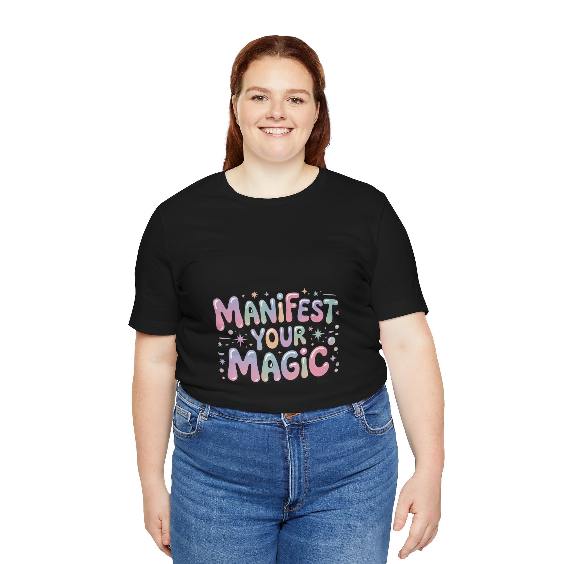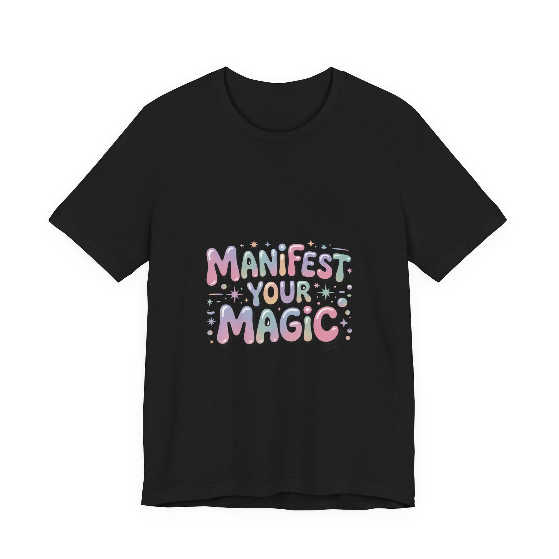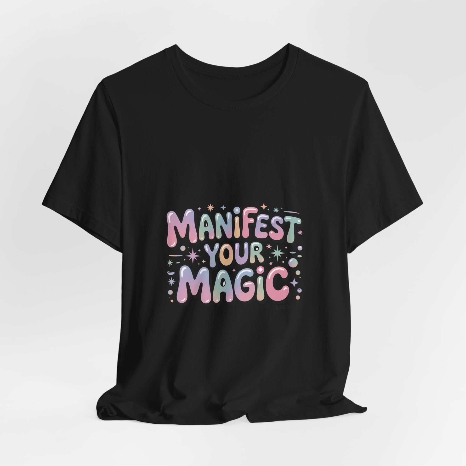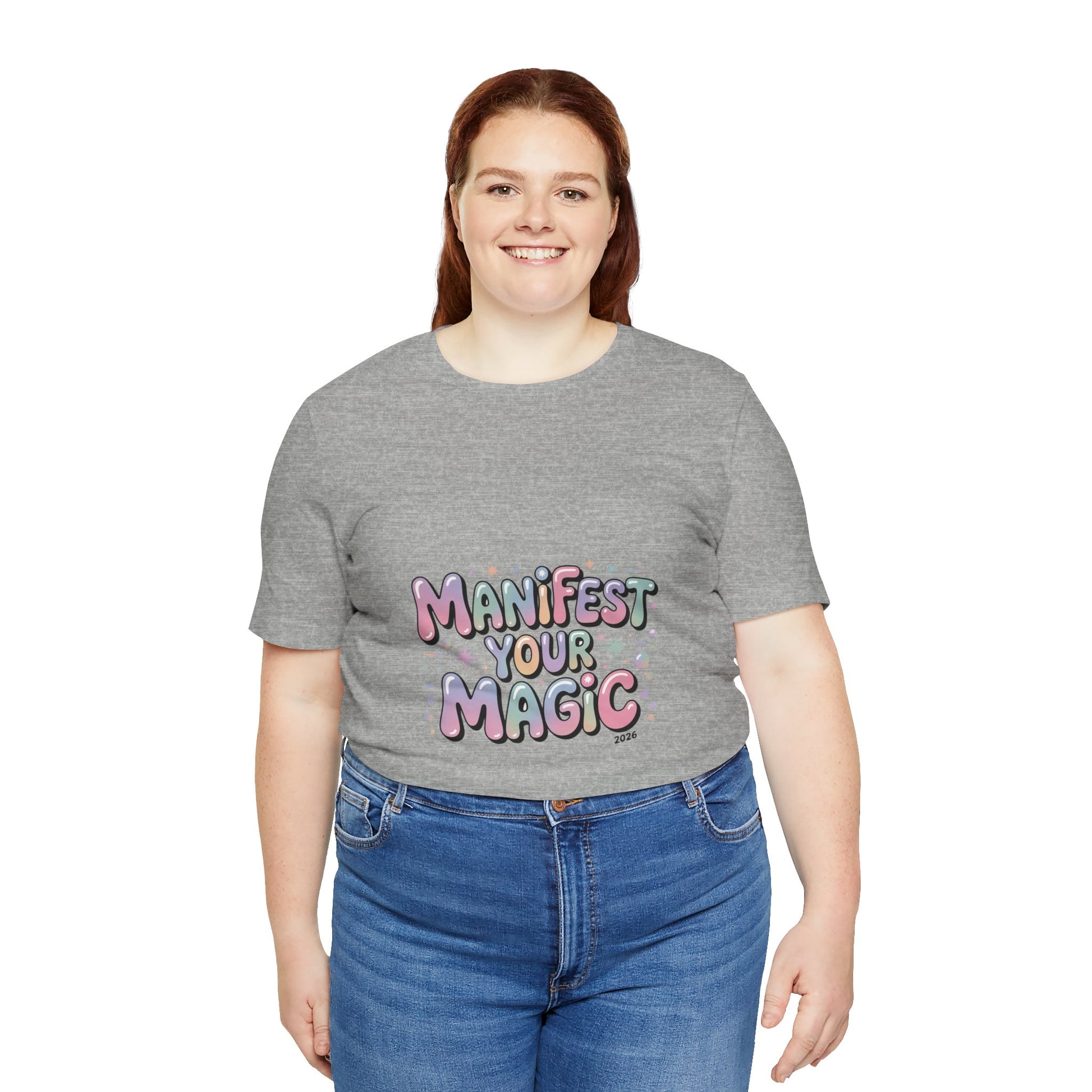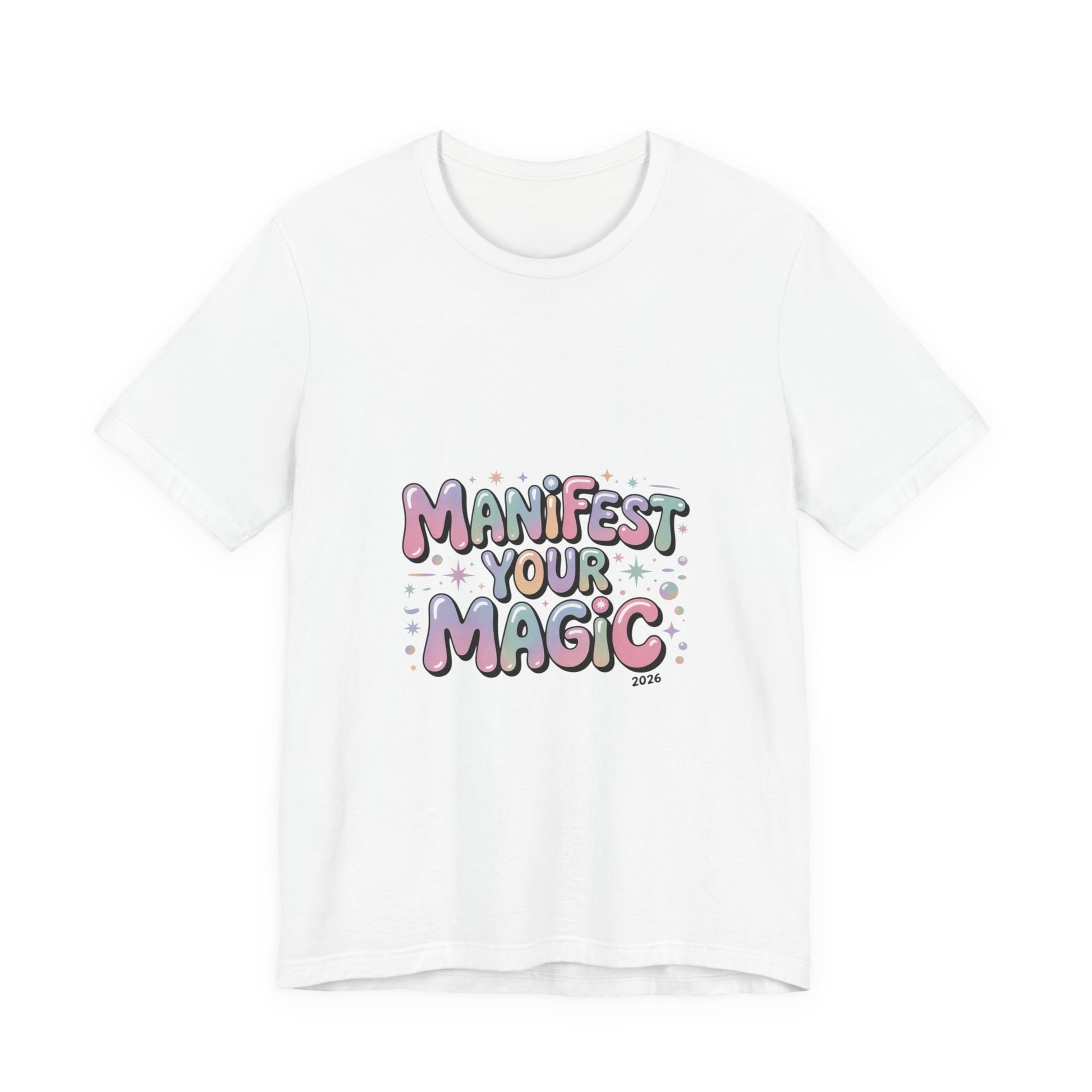 Soft, pastel charm tee that reads like a wearable mantra for the Lucky Girl 2026 trend. Playful bubble lettering says “Manifest Your Magic” in glowy pinks, lavenders and mint with tiny sparkle and charm motifs—a casual, optimistic piece that layers under jackets or stands alone during festive end-of-year moments. The vibe matches manifest-luck searches and upbeat, feminine aesthetics without using any trademarked names. Product features - 100% Airlume combed and ring-spun cotton (Bella+Canvas 3001) - With side seams for added shape retention - Ribbed knit collar with seam and shoulder tape for stability - Sleeve and neck label prints produced with DTF/DTG techniques - Tear-away label; REACH certified; sourced from Honduras Care instructions - Machine wash: cold (max 30C or 90F) - Non-chlorine: bleach as needed - Tumble dry: low heat - Iron, steam or dry: medium heat - Do not dryclean